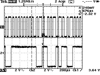 into the PIC16C54, Trace 2 is showing our NEW PC-READY data.